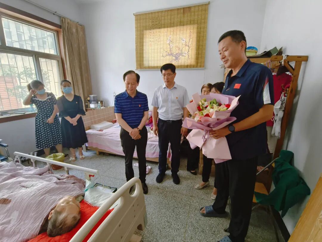 为弘扬党的光荣传统和优良作风,充分体现党组织对党员的关心和爱护,在中国共产党成立102周年来临之际,6月29日上午,滑县中心医院党总支副书记、院长席连峰,副院长朱瑞林等一行9人慰问了为医院发展奉献一生的老党员们,为他们送去了党组织的问候、关怀和祝福。