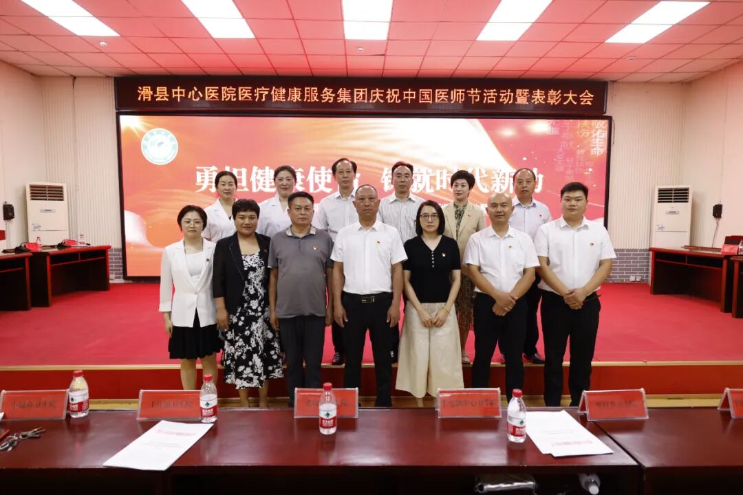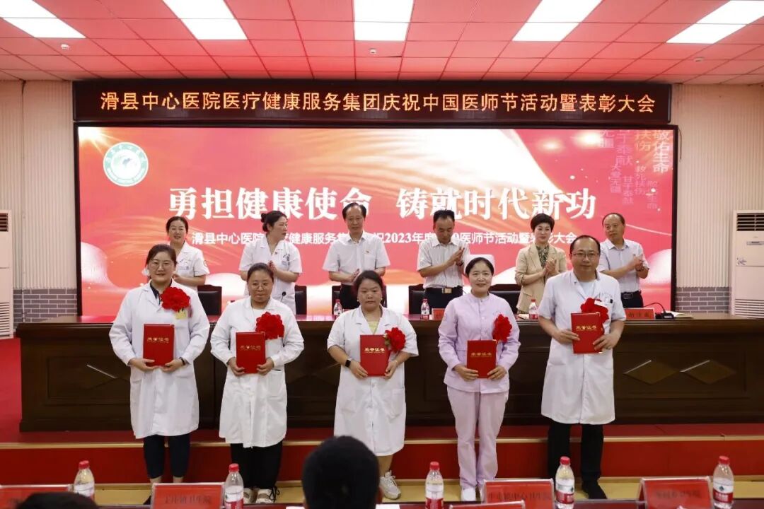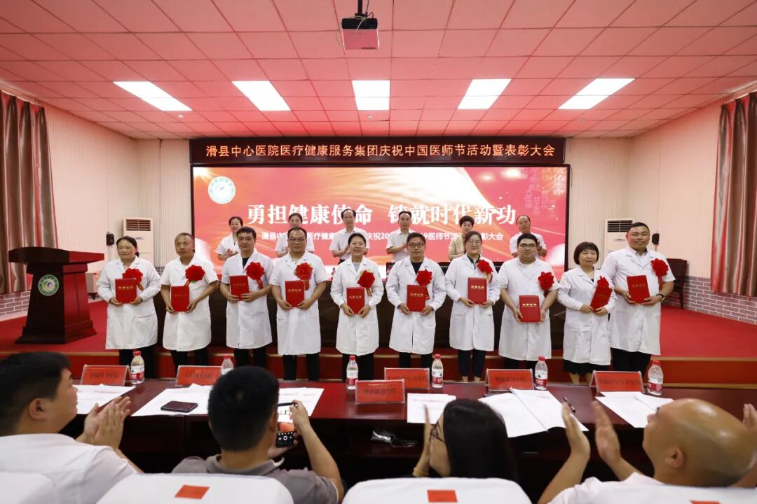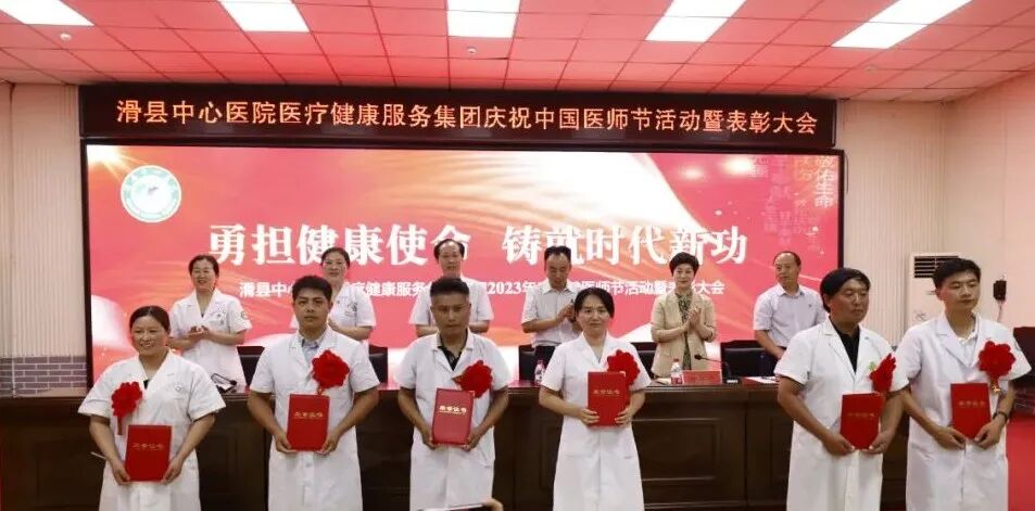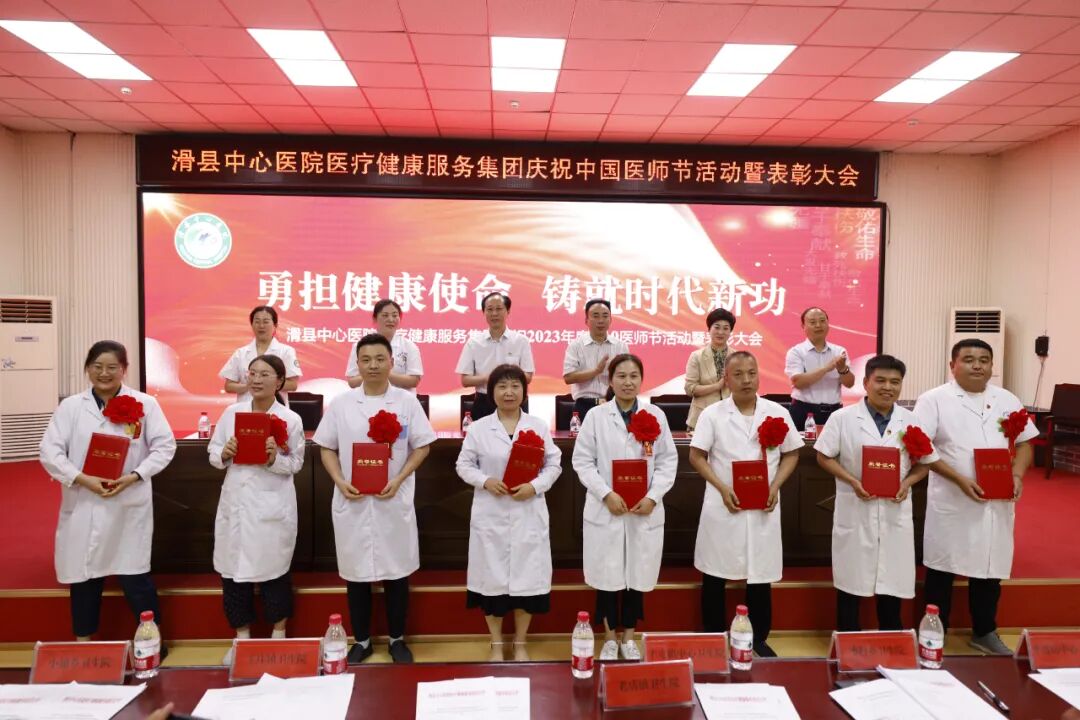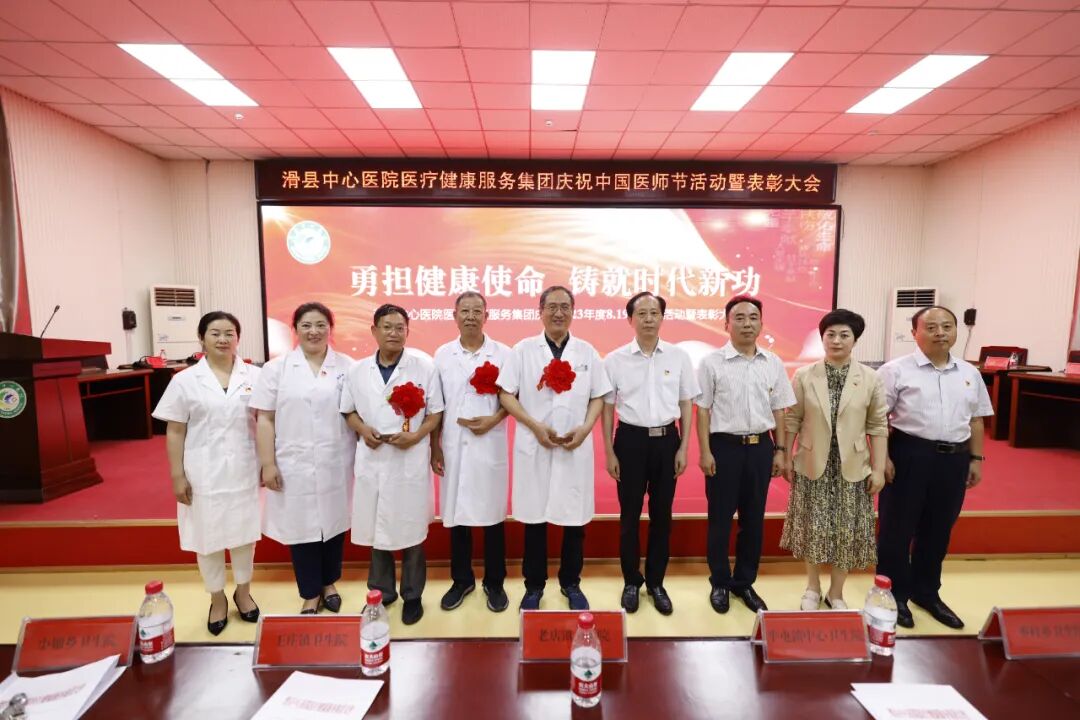 8月18日下午,滑县中心医院医疗健康服务集团隆重举行2023年第二届“中国医师节”表彰大会。本次“中国医师节”主题为“勇担健康使命,铸就时代新功”。总院领导班子、集团分院领导班子、全体中层人员、医生、医技人员出席。大会由副院长魏健主持,共分六项议程。