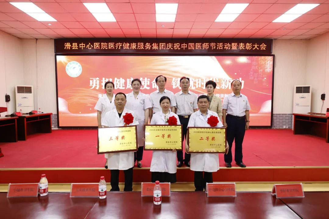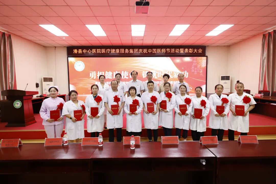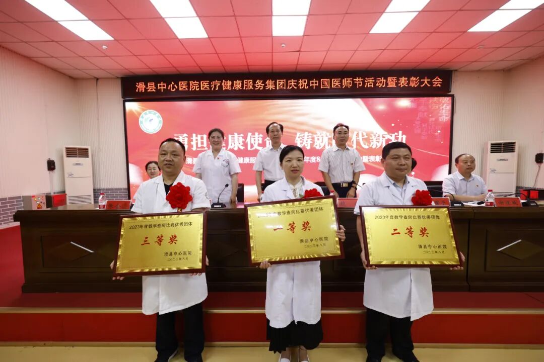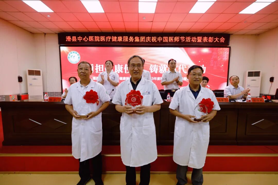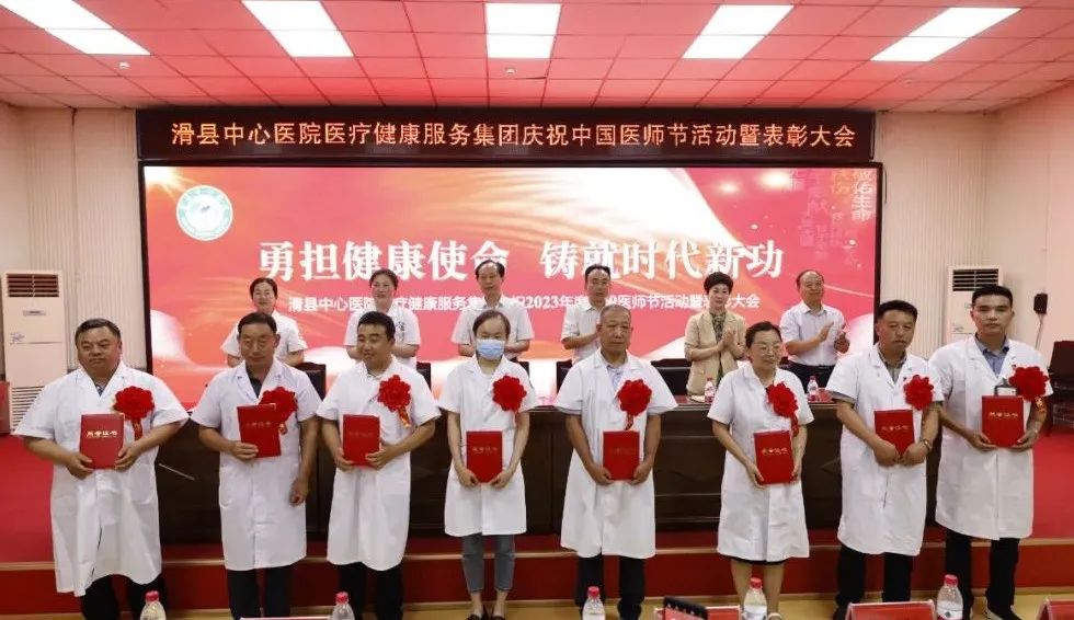 8月18日下午,滑县中心医院医疗健康服务集团隆重举行2023年第二届“中国医师节”表彰大会。本次“中国医师节”主题为“勇担健康使命,铸就时代新功”。总院领导班子、集团分院领导班子、全体中层人员、医生、医技人员出席。大会由副院长魏健主持,共分六项议程。